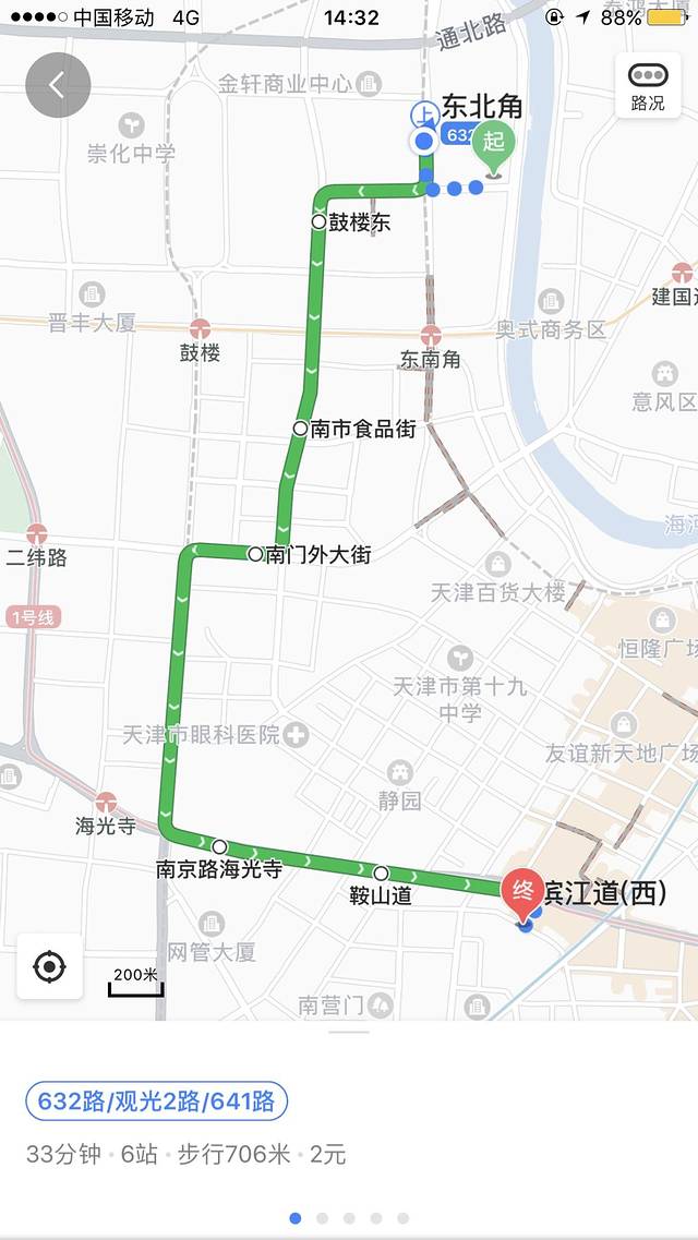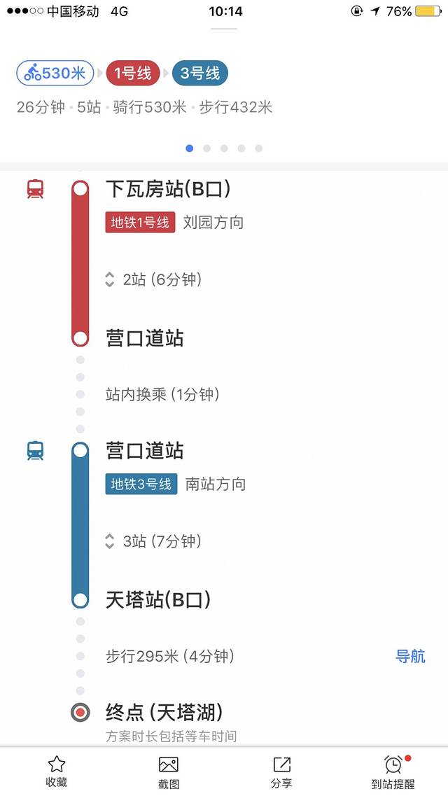 下地铁百度地图导航到酒店两站路,可以坐公交车