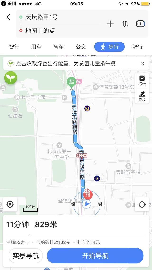 酒店到天坛公园两站的路程,可以步行,也可以公交车至法华寺站下车。