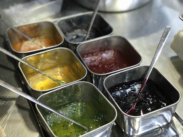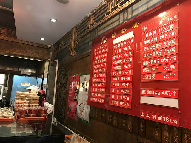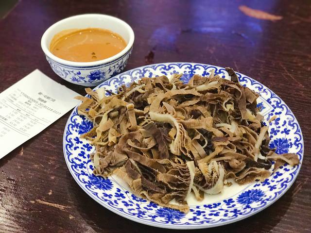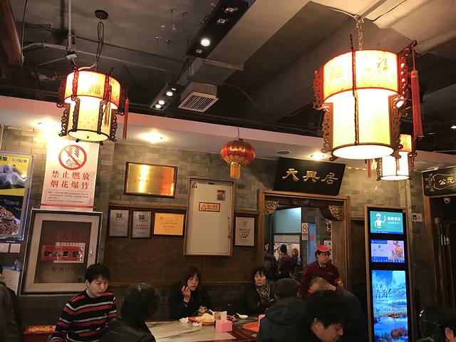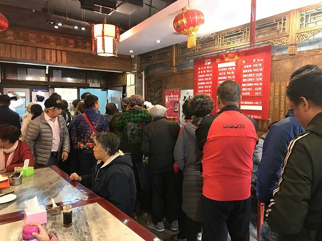 天兴居以炒肝闻名,其色泽喜人,肥而不腻。 将“白水杂碎”中的心肺去掉,用除去腥臭味洗净的猪肠猪肝为原料,加上葱、姜、蒜末酱色和勾芡,定名“炒肝”。稀稠适度,将其盛入喇叭形小碗中如宝盏含晶,吃时不用筷子和勺,只需手托碗底,嘴唇沿着碗边转着喝,别有一般风味。