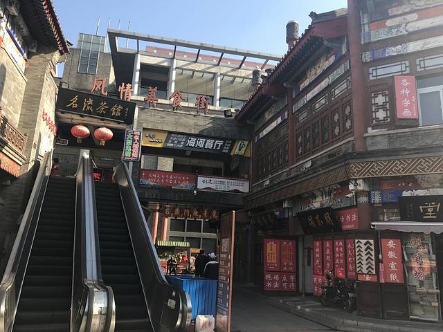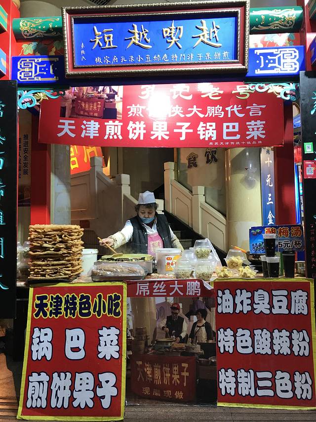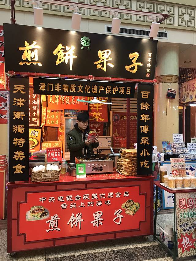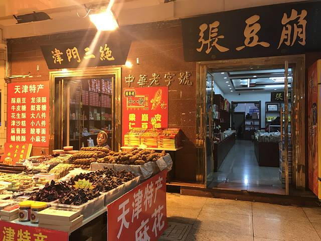 古文化街内有近百家店堂。是天津老字号店民间手工艺品店的集中地,有地道美食:狗不理包子、耳朵眼炸糕、煎饼果子、老翟药糖,张家水铺、天津麻花等。旅游景点有天后宫、喜马拉雅、大清邮币、泥人张彩塑等。