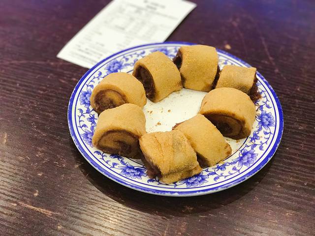 炸三角是都一处的著名食品之一,迄今已有100多年的历史,有荤馅和素馅两种。吃时须先用筷子在皮上扎几个眼使馅里的热气冒出来,然后再吃