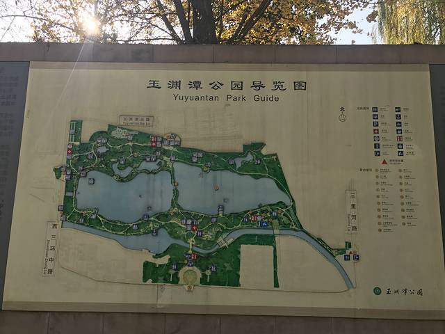 玉渊潭公园,AAAA级景区,位于海淀区。东门与钓鱼台国宾馆相邻;西至西三环中路与中央电视塔隔路相望;南门在中华世纪坛正北方,北接海军总医院。