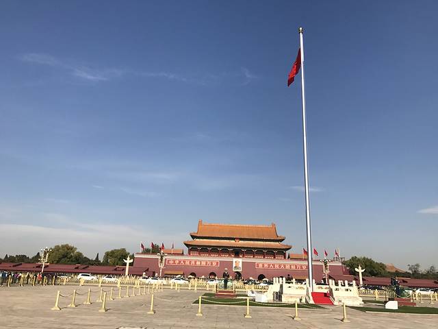 吃好早餐出发天安门广场,酒店门口有公交车,酒店东侧路——前门599路直达天安门,比地铁方便