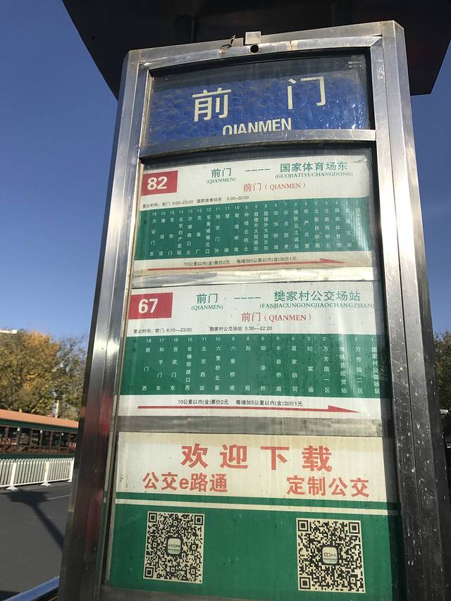 午餐后在前门步行街乘坐82路直达国家体育场,50分钟左右