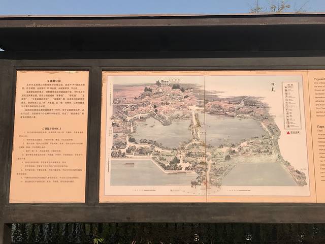1960年定名玉渊潭公园。截至2015年,东西宽1820米,南北长1106米,规划总面积136.69公顷,其中水域面积61公顷,建成绿地面积74.44公顷(含草坪),绿化覆盖率达到95%以上,园内现有各种植物约19.95万株。