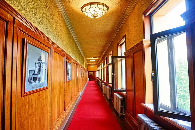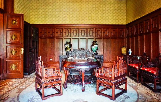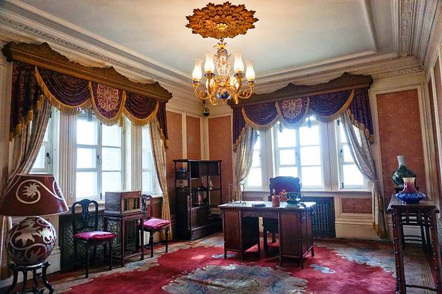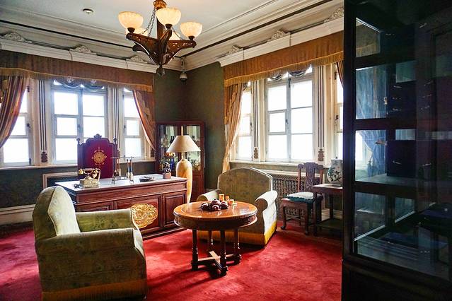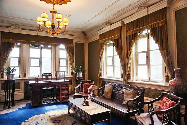 一楼是溥仪处理政务与娱乐的场所,二楼原设计为溥仪和婉容的寝宫,据说溥仪疑心日本人在同德殿安装窃听设备而从未使用。