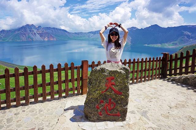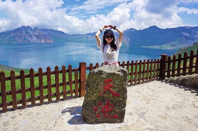 而后我们跟随大部队排起了长龙,为的是更近距离和天池合个影。在天池观景台有一出收费摄影区域,30元/张。工作人员能中朝两语,整体来说性价比非常高!30元仅为景区拍照费用,轮到你时,工作人员为你拍完照后,还可以用你的设备再拍几张,若多人,他们也会为你们单独拍摄,也允许你在边上为同行的伙伴拍摄,拍完你还可以在边上小小逗留一会儿~这片区域不用担心会被人头遮挡,另外你还可以让摄影区域维持秩序的工作人员帮忙你拍摄,总之给我的印象便是工作人员非常友好,拍的不差,整体性价比我个人是觉得很好的!