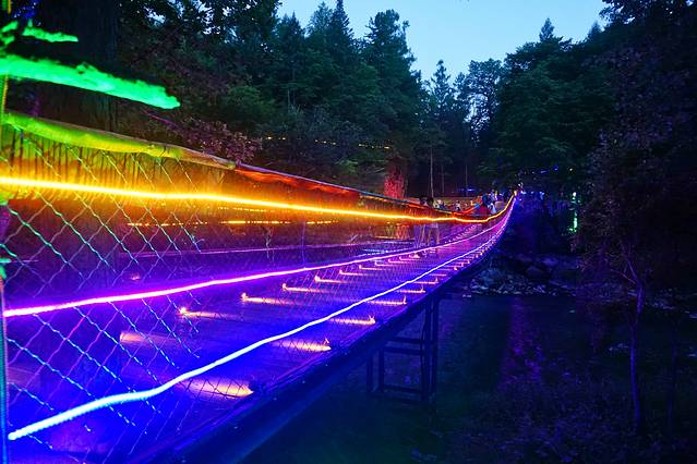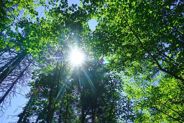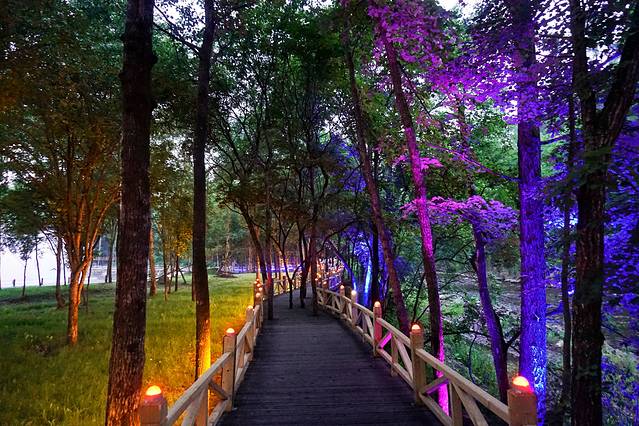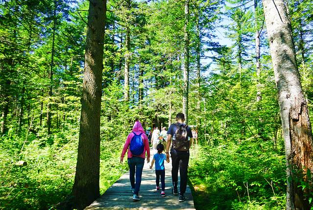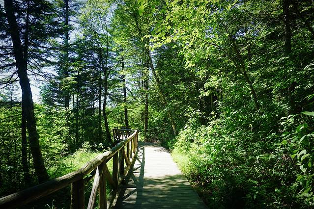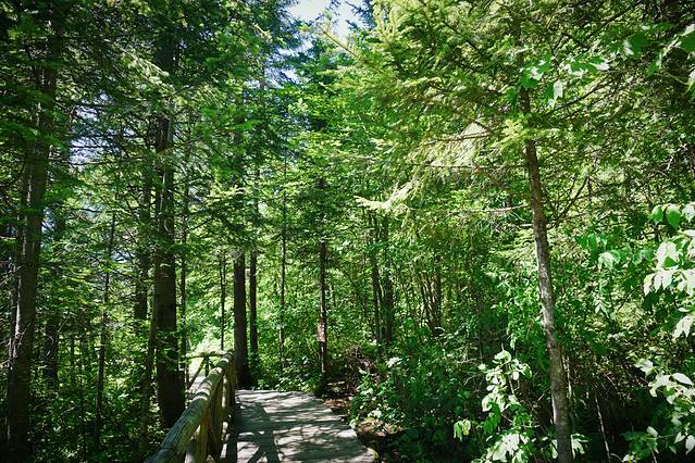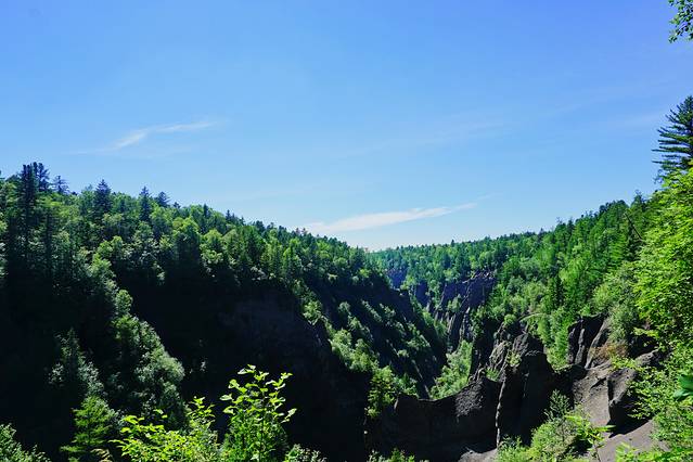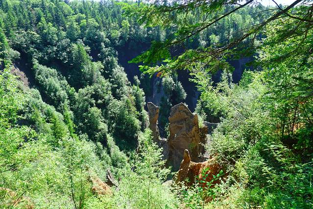 从林中穿过,围绕自然形成的峡谷,有十几个观景平台。山谷中虽有不少凸起的石峰,但规模不够大,许是盛夏时节,蔓延翠绿加之植被覆盖,使其缺了些视觉震撼。