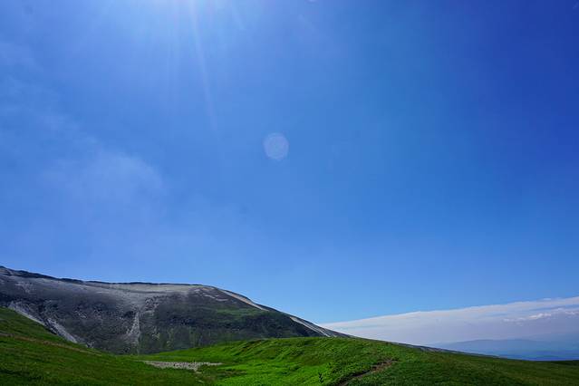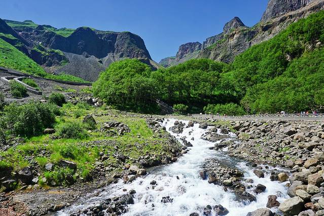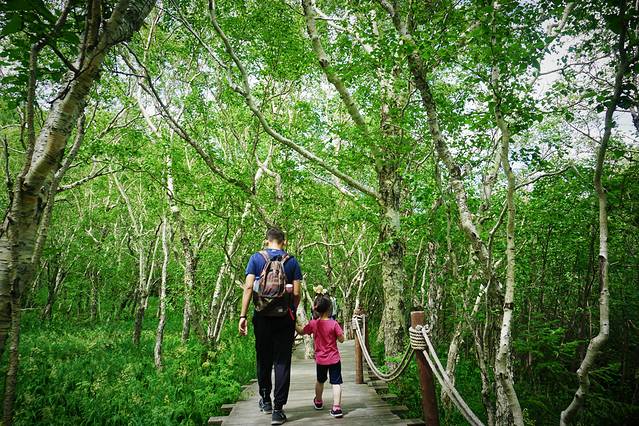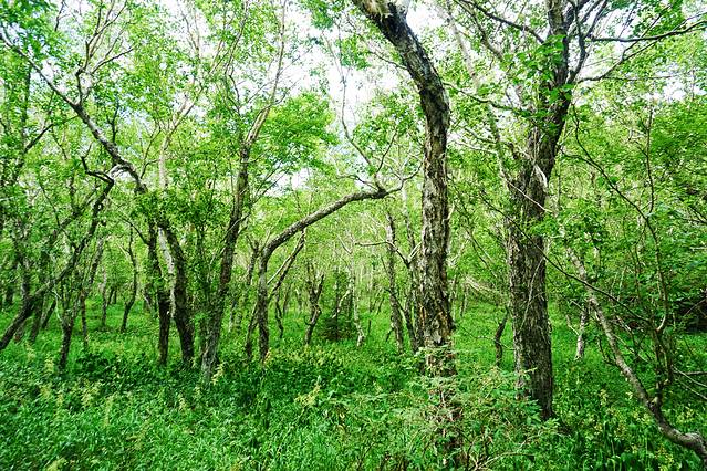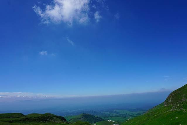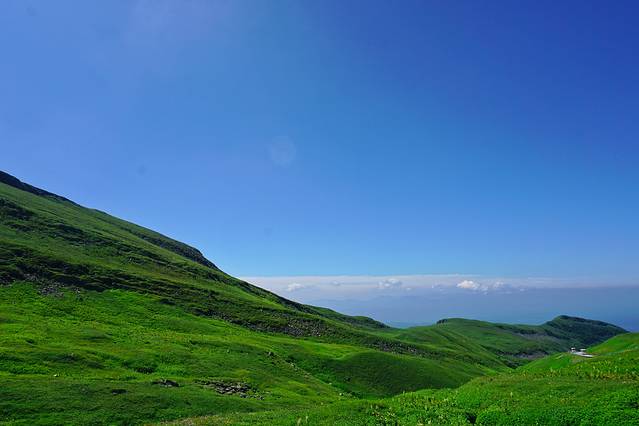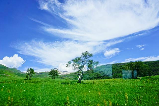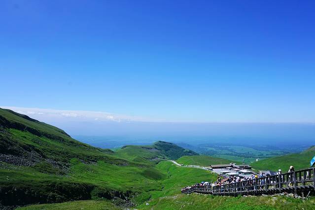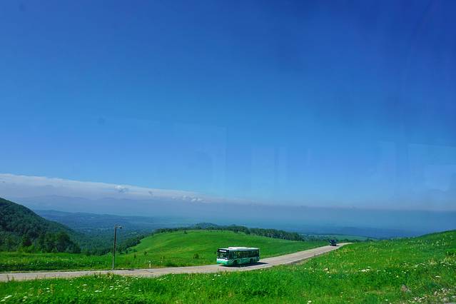 很快车子便抵达西坡景区换乘点,我们改乘环保车一站直达天池,这一段路程非常值得欣赏,随着车子上到一定高度后,车窗外的植被也明显发生了变化,从针叶阔叶混交林过渡至高山草甸,仿若无垠绿毯,绿,是唯一能够用来形容她的字眼。置身在这里,我无法想象到数月之后这里将是白雪冰霜和终年寒风。