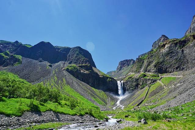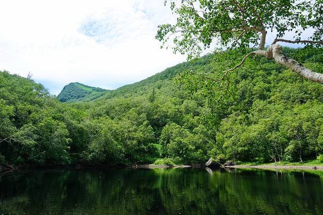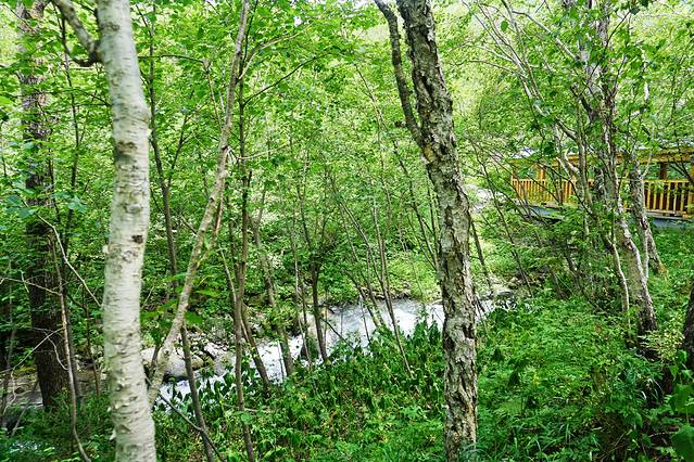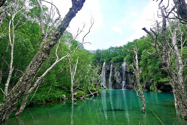 绿渊潭位于岳桦林带,因岳桦荫翳、潭水碧绿深窘而得名,绿渊潭有几个小瀑布,潭水碧绿,宛如九寨,因此也有“小九寨”之称。