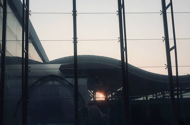 在萧山机场候机时观看了日出