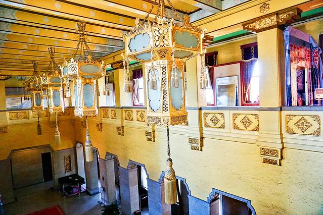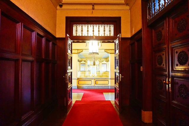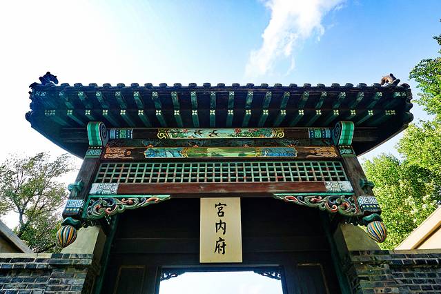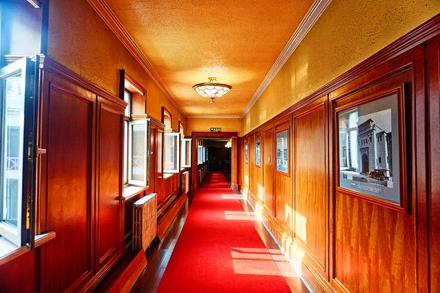 经怀远楼的走廊来到同德殿,命名的由来是溥仪为了表示与日本侵略者同心协力,取“日满一德一心”之意。这里是一座集政治活动、日常生活和娱乐为一体的二层宫殿式建筑。