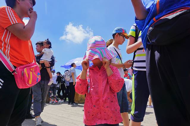 排队期间,我身后是来自韩国的一家四口,排队虽然带来了烦躁,但我回头看他们在摄影区拍照时一扫先前不快异常的激动,我想起早前看韩综《超人回来了》有一期便是来到这里,结合长白山历史、政治地位,能感觉出中、朝、韩人民对这座山的崇敬和虔诚。