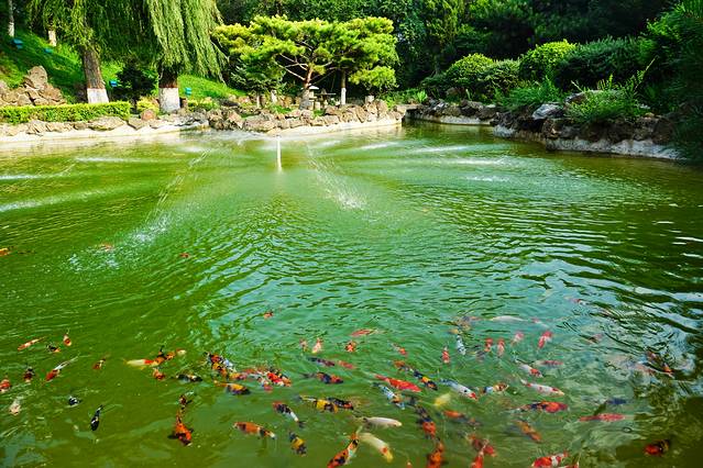 出了同德殿便来到东御花园,这是日本园林设计师设计的融中国北方与日本园林于一体的花园,中央人工池内放养锦鲤。藏在花园假山的是防空洞,是溥仪及家人用来躲避空袭的场所,如今的防空洞早已失去它在动荡年代的初衷。