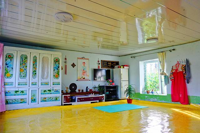 一进门女主人正值暑假期间的女儿为我们送来了新鲜研磨的豆浆,大概是看出我对这些与我过去居住生活习惯近乎不太相近的场景一脸好奇,为我简单介绍了屋内结构,印象最深的还是她屋里那发热的墙面,我一直都听闻东北炕的温暖,也听闻地暖,大概是我孤陋寡闻,当听闻那面墙也是热的时候瞪大了眼,小姑娘很热心的告诉我,她冬天外出回来最喜欢的就是贴着墙面。在南方的冬季饱受魔法攻击的我,在羡慕的同时也不得不感叹人类的智慧!