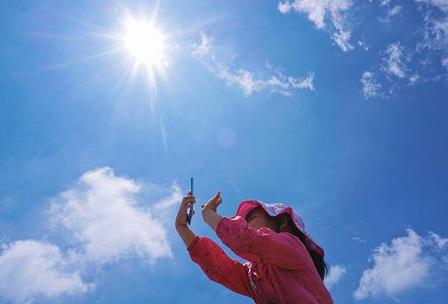 顶着烈日抢占高地抓拍天池的小妞