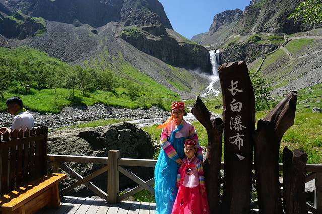 长白瀑布观景台依旧有摄影区,普通照收费30/张,朝族服装照50/张