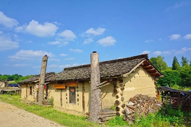 在讲解员的带领下,走进村落后却发现自己置身的是一副关东传统的农家生活,没错,这里很多生活的村民并非都是东北人,不少都是当年闯关东来的。锦江木屋后来也是从当地满族的原始住所并结合“闯 关东 ”的汉族民居融合得到发展,闯关东本身就是一个丰富的往事,而这一切也让木屋村落文化更为沉淀。