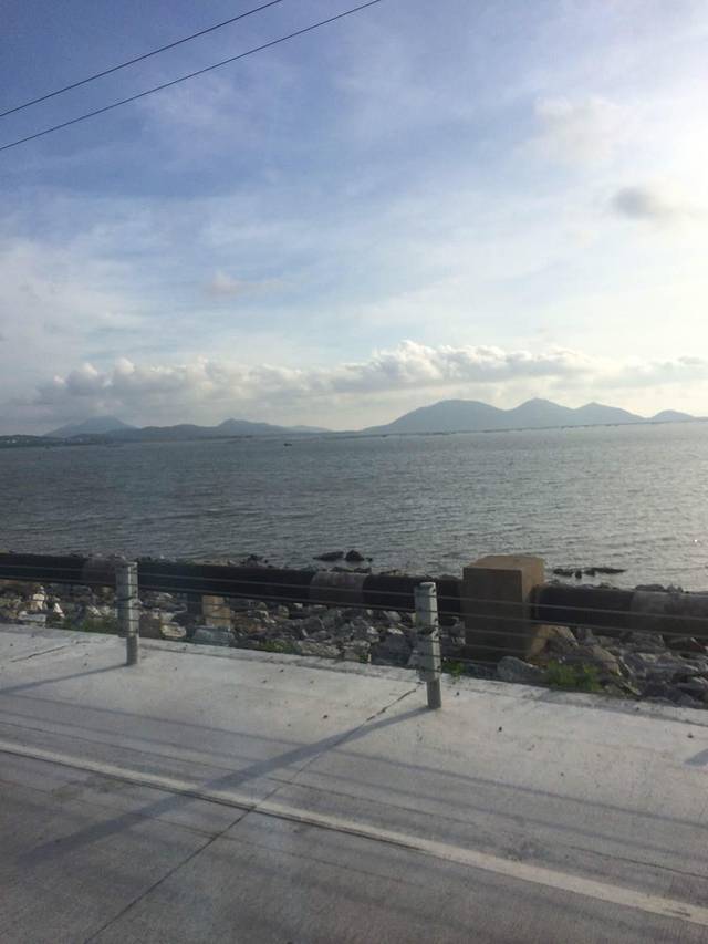 听说7-8月份是海陵岛旅游旺季,所以车上满满都是游客,大家都非常欢乐,比较很快就能见到大海了嘛~~很期待的说。。。。入岛的路程,没有我们想象的那么快,从阳江高铁站出来,很多就进入了农村里面,然后走了感觉很漫长的一段路,看了下时间,大概有40分钟的样子,终于看到前面有一条长长的大桥(后来知道,是海堤,入岛的必经之路),然后路的两边全是白茫茫的大海(当时以为是大河,毕竟没见过大海嘛~~),其实挺漂亮和壮观的,原本沉闷的车厢,一下子大家又兴奋起来了~~~~