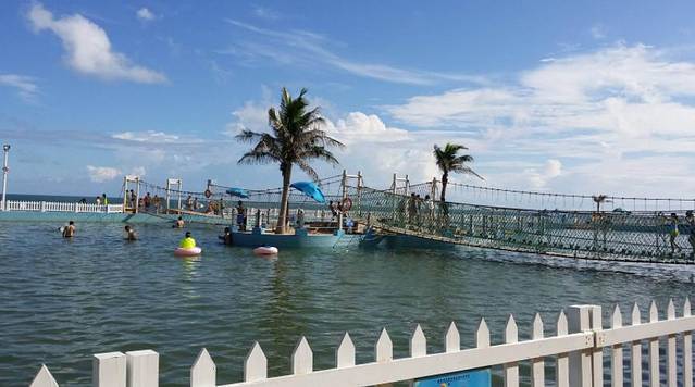 不过大角湾这里还是挺坑的,里面换衣服和冲淡水要5元/人,保管物品10元/箱。。。。抛开这些还是可以的,沙子很细,海水很清澈,还有一些水上娱乐设施