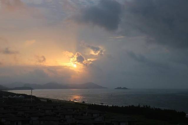 然听说看日出是一件特别浪漫的事情,但是因为平时比较懒,极少会在太阳出来之前起床,但是既然来到海边,又听老江说,我们住的房间,在阳台就能看的很棒的日出和日落,所以我们决定了,早点起来看了日出,再继续补眠。