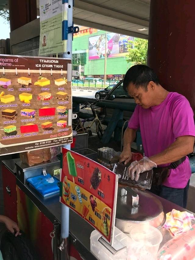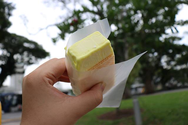 雪糕有三种吃法,第一种是纯雪糕,第二种是把雪糕夹在两块威化饼干之间,第三种是把雪糕夹在面包之间。个人推荐加威化饼干,新加坡属于热带,即使是晚上,气温也非常高,雪糕容易化,威化饼干夹着,化掉的雪糕水,被威化吸收,一方面是口感不错,另一方面不会吃的滴滴答答。