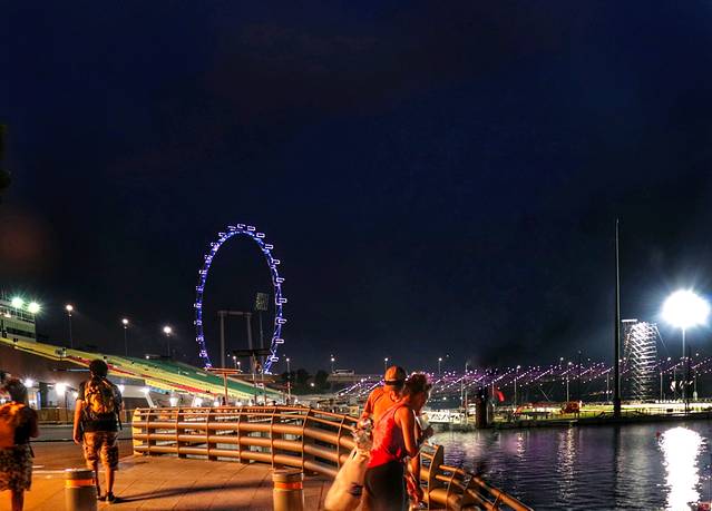 站在海湾和螺旋桥处都能看到新加坡飞行者摩天轮,该摩天轮是世界最高的摩天轮,转一圈需要37 分钟。虽然看上去很近,但实际上走走还是需要一段距离的。