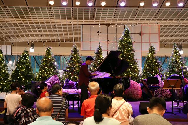 地铁下室内免费的小型演奏会,好多市民和游客已经排排坐,坐等欣赏钢琴演奏了