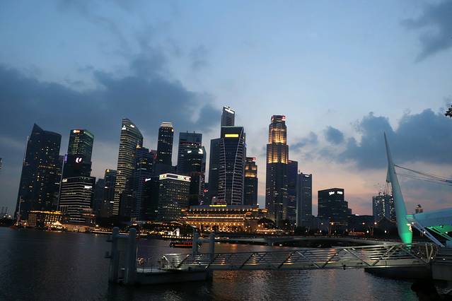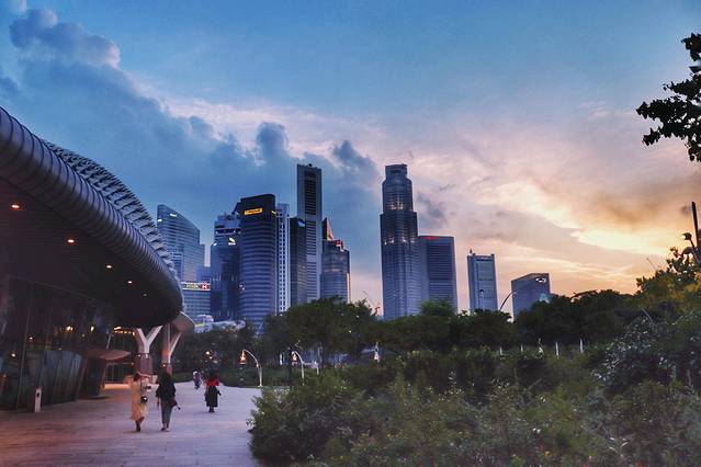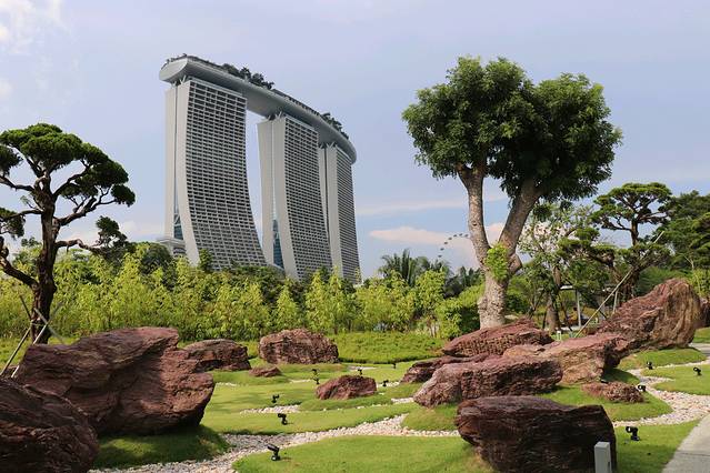 骄阳下我们暴走了几乎一个下午,感觉自己都快变成了人干。终于等到傍晚时分,我们来到了新加坡的中心地带——滨海湾。