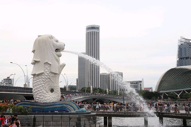 这里普及一下鱼尾狮造型的由来,鱼尾狮(Merlion)是一种虚构的鱼身狮头的动物, 1964年由范克里夫水族馆馆长布仑纳设计的,新加坡旅游局在1966年把鱼尾狮注册为它的商标,并于1971年委托著名雕塑家林浪新塑造称一座狮子头、鱼身、鱼尾的雕塑。