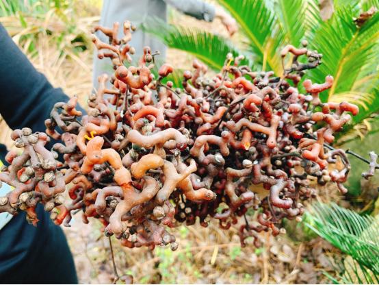 导游直接从地上捡起来,掰开来递给我们让我们尝尝,说这是当地人小时候常吃的零食——鸡爪梨,我接过来仔细瞅瞅,乌黑的丑丑的外壳,长得确实很像鸡爪,但是掰开里面却是黄黄的汁液和纤维,我稍稍舔了下,超级甜,还有一股脆梨的味道,难怪叫鸡爪梨,感觉大自然真神奇哈哈。