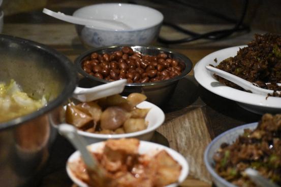 一大早就起床了,行李都收拾好,7点准时集合。本来住民宿都是八九点才出门,但是我们打算去的大慈岩有点远,晚上又得早点赶回学校,所以大家就起早点。我们一下楼就看到了非常丰盛的早饭,有剩下的清明裸和昨天烧烤剩的很多原材料做的菜,以及甜甜的番薯,白粥和土鸡蛋等等。后来才知道奶奶五点就起来为我们准备早餐,真是太感动了,祝奶奶一直这么开心。