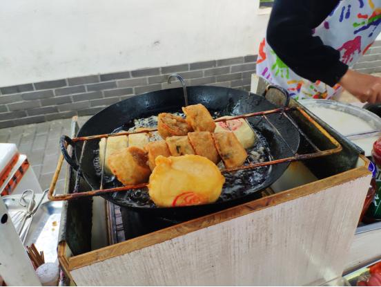 下山后已经12点了,开了半小时左右到达寿昌镇,车上吃了点早已自备的小零食(导游提醒我们带的,真是一位什么都预料到的神奇的导游)。抵达寿昌后,导游带我们走到了小镇中心,根据我们的口味推荐了几家店,最终我们选择了特色炒粉干,后来也跟着导游去吃了馒头夹臭豆腐,三块五一个,臭豆腐是老板自己家做的,超好吃,特色炒粉干有点辣,果然建德人很爱吃辣,导游还给每个人买了一个油煎粿,吃的超级撑。吃完后导游带我们走状元桥,据说当地的学生中考或者高考前都会来走一走,虽然寿昌是个小镇,但是建设的也很好,更感谢的是导游,从生活化的角度告诉了我们普通导游不会告诉我们的知识,带我们更深度的体验到了当地人的文化、生活,这就是当地人导游的优势吧。
