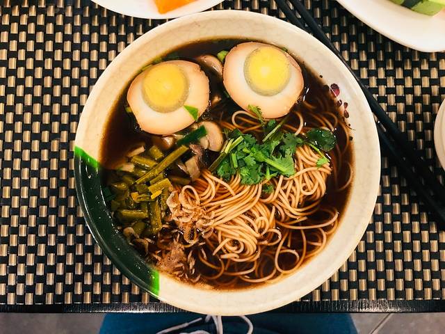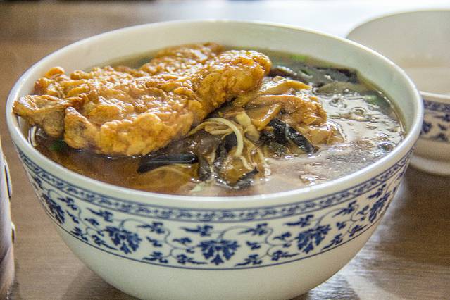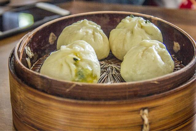 和小伙伴两个人点了一份大排素双浇加一份小笼包,引得旁边的歪果仁吃了一半也点了一笼。味道嘛,还是可以的,苏式汤面,细面为主,汤底浓郁,咸中带甜,很合我的口味;不过大排显然面粉刷的有点厚了,并不是很好。