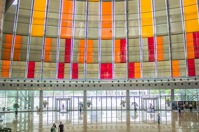 比较心水的是苏州音乐厅的内部架构非常的漂亮,墙壁设计远看犹如一片又一片的贝壳,其实是很具有苏州特色的“折扇”。