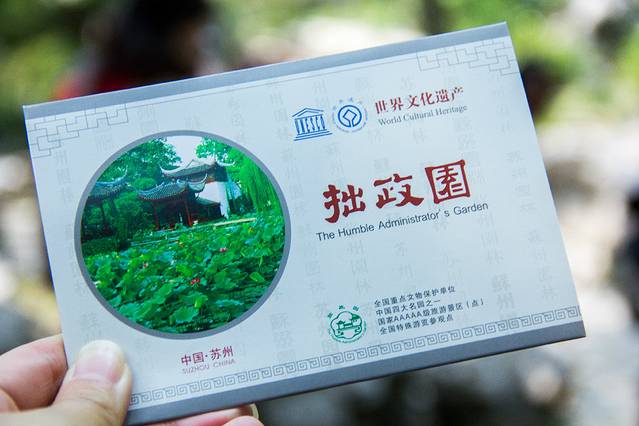 从拙政园东门进入,在检票口拿一张景区游览示意图,光是看这图就可以想见拙政园的曲径通幽何其复杂,友情提醒:一定要拿一份,不然会迷路的。