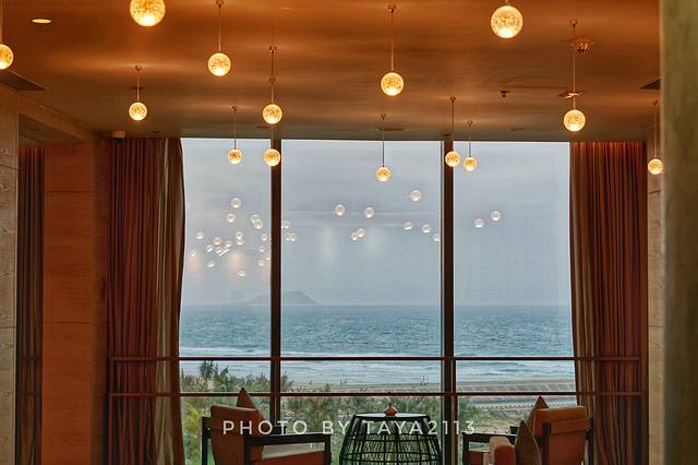 海边度假,日出日落是非常值得期待的美景,上次在沙巴遗憾的错过了世界十大日落美景,这一次我要好好欣赏一下陵水的日落,香水湾富力万豪度假酒店有一个绝佳的观赏南海浪漫夕阳之地,那就是位于酒店顶楼的红宝石吧,等待着夕阳西下,染红天涯,让身心得到彻底放松,惬意惬意真惬意!但是旅途总是充满了不确定性,唯美的想象被厚厚的云层挡在了背后,继续留在想象里,可是亲爱的,不用遗憾,这里除了日落美景以外,还有很多,且听我娓娓道来。当我们来到红宝石吧的时候,天还是亮的,270度全景阳台上,拍个美照,把自己完美的嵌入到这美景中间去,依着栏杆拍,坐在椅子上拍,随意就好,因为都是美景。