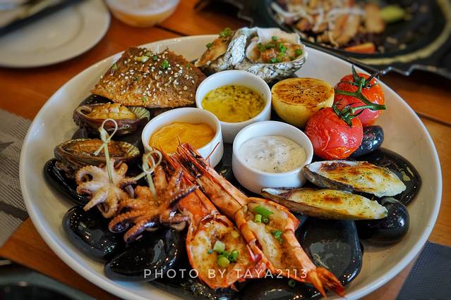 早餐在美食岛西餐厅解决的,没有惊喜也没有失望,正常五星酒店水准,还行。午餐是在美食岛,待遇就不一样了,各种意面,海鲜的、蘑菇的、牛肉的,这是为妞儿专属准备的,挺大的一份牛肉意面,她居然一个人就给解决了。海鲜大餐:这可是一道硬菜,将新鲜的虾、章鱼、鲍鱼、青口、生蚝、番茄等食材烹制好后摆在预热好的纯朴无华,真挚宁谧的黑卵石上,中间再摆上秘制的3种酱料,把海的味道吃到嘴里,留在心里,还有妞儿喜欢的自带橙子的水果沙拉和各种精致糕点,不说了上图!