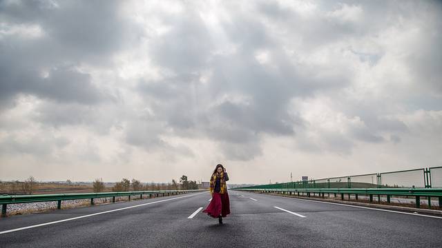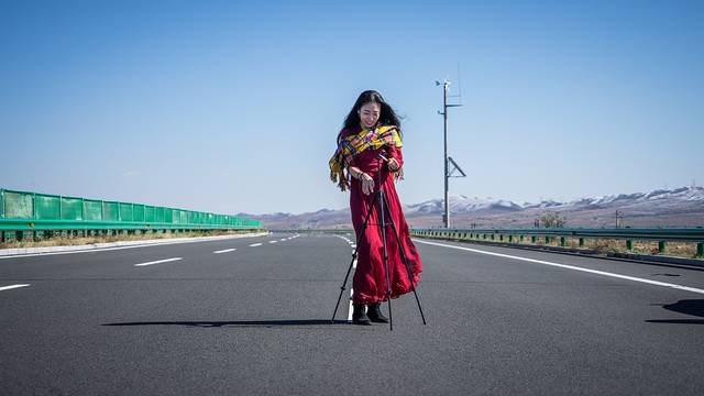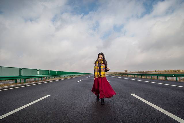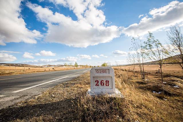 在京新高速上,又是一小时才遇一辆车的孤独,下车拍照成了排解孤独最好的方式。