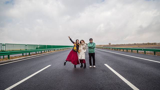 👫“给大家拜年”团队:在冷风中硬要装逼的曲小姐、少不了的树易同学、还有这次 自驾 非常非常重要的老司机——七秒蜀黍