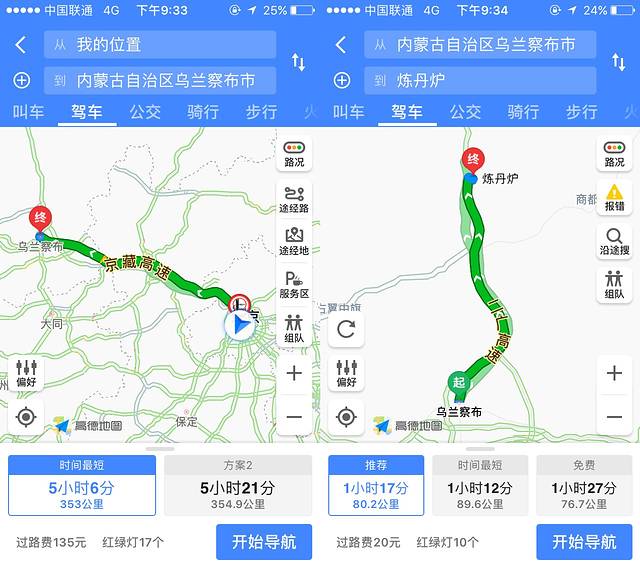 行程时间、距离以及过路费都在地图上,地质公园定位可以定“炼丹炉”。