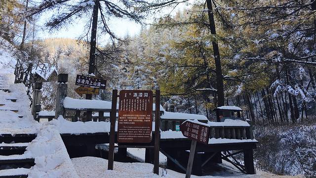 走到冰凌沟才走了路线的1/4,无奈随着气温降低,栈道上的雪开始结冰,几乎所有的游客在这里都选择了返回。