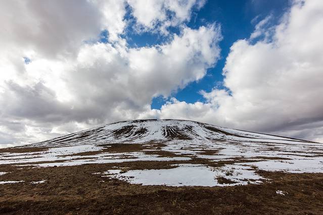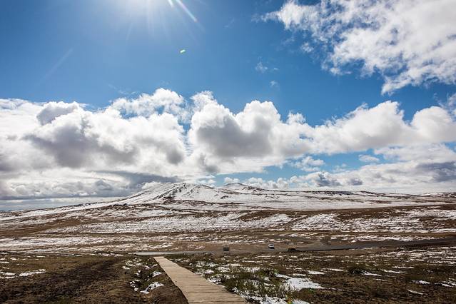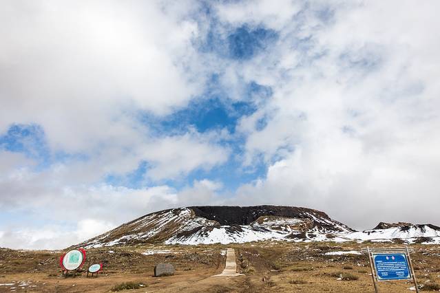 意外的降雪,得以看到像抹了奶油的巧克力蛋糕一般的火山,
