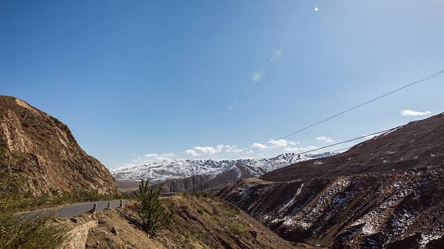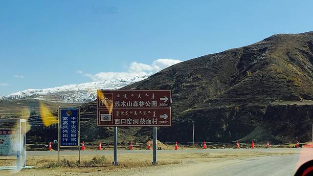 进入辅路后,伴随着雪山、野草和山崖的洗礼;有一小段的行驶前方一直可以看到雪山,于是大家又按捺不住麻利下车。