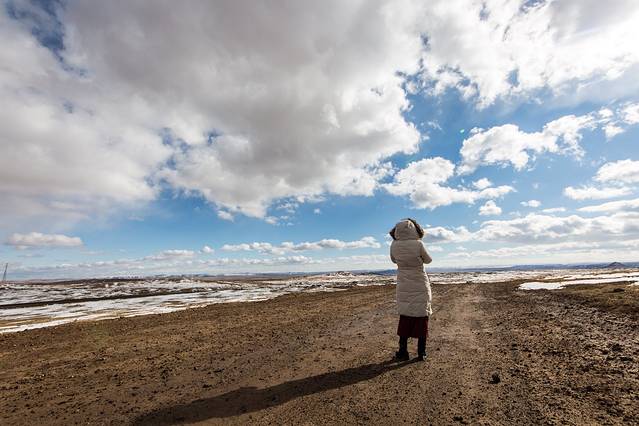但谁又知道,辽阔的这里风力不是一般的大;我们反反复复,磨磨蹭蹭,也是下了许久的决心全副武装开始爬火山。