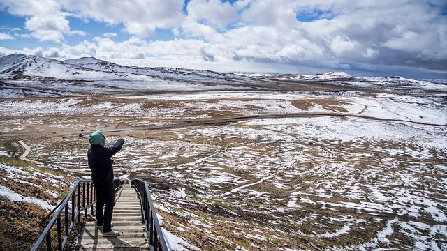 3号火山是唯一有人工步道的,虽然路程很短,但越上走越艰难,最后风力大的不得已要抓住栏杆……