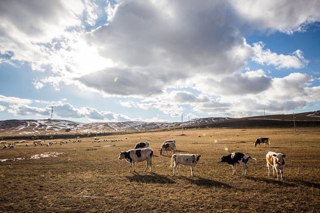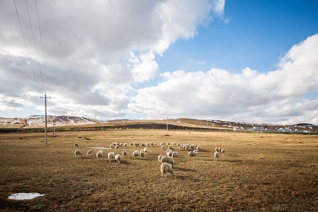刚上G208,就被窗外的羊群和牛群吸引~它们的生活,像《向往的生活》里小H,故宫里的猫咪,而围栏外的两只单身狗,则表示差异为什么这么大……