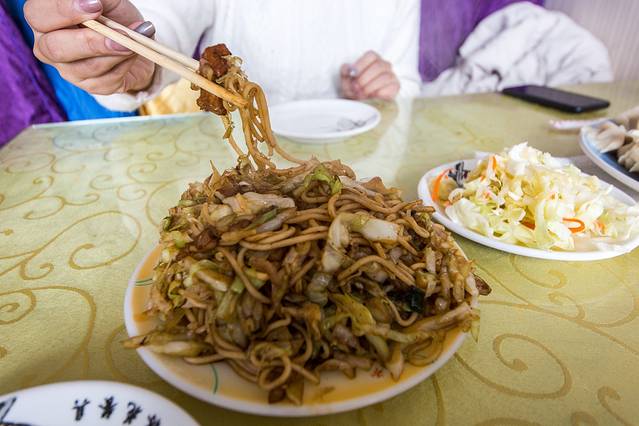 同样也是看着要黄了的唯一餐馆,我们还是去敲门看能否“讨口饭”。幸运的是,饭店虽然暂停营业了,但阿姨还是很乐意的招待了我们。而且还是很正宗的莜面,RP再一次爆发~