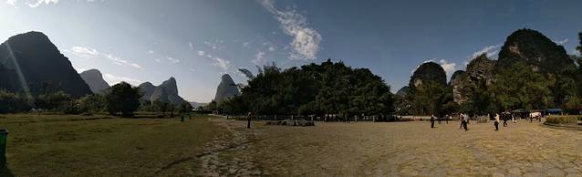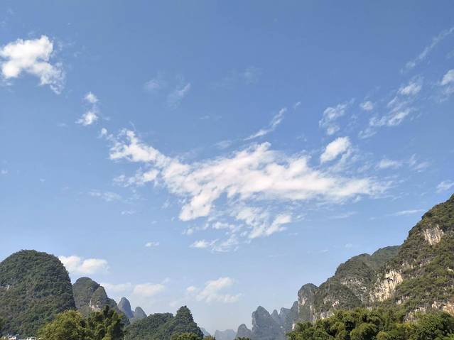 11月1日,由于交通不方便,在住所报了一个团,前往阳朔。中间做了一段电竹筏,经过“九马画山”。入住“Q加.阳朔西街华景里精品客栈”,夜游“西街”。
