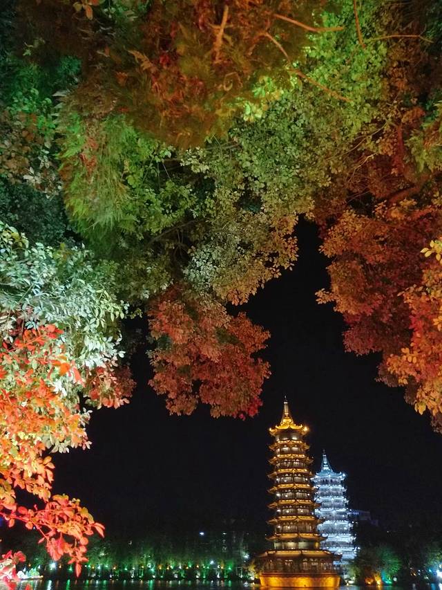 10月31日,长沙高铁到桂林,入住桂林站附近的“花里旅行江景客栈(桂林象山公园店)(店内很适合摆拍哦)”,休息在房间里拍了一下照然后步行前往“象山-正阳路步行街”吃了正宗的“明桂米粉”,夜晚游了两江四湖的日月塔和玻璃桥。